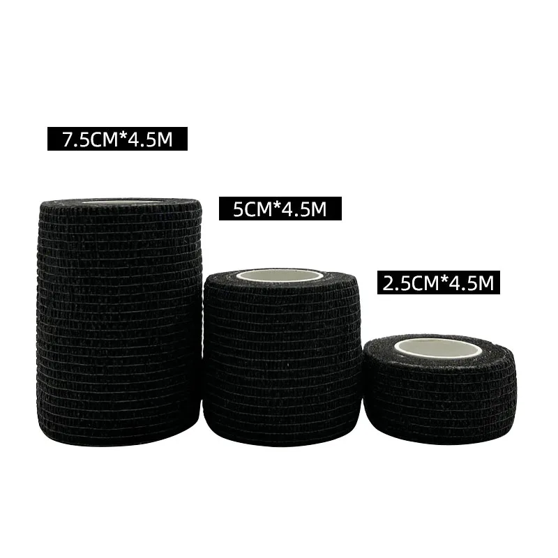 These black self-adhesive sports bandages provide reliable support and protection for wrists, ankles, and other joints. Made with cohesive elastic material, they adhere securely without sticking to skin or hair. Breathable and waterproof design ensures comfort during intense physical activity. Available in 1, 3, 6, or 20-piece packs to suit different needs. Ideal for sports, workouts, or first aid emergency use. Provides compression and stability to reduce strain and prevent injuries. Easy to wrap and adjust for a snug, secure fit. Lightweight and flexible, allowing a full range of motion. Durable material ensures multiple uses without losing elasticity. Keep your joints supported and protected during training or recovery with these versatile bandages.