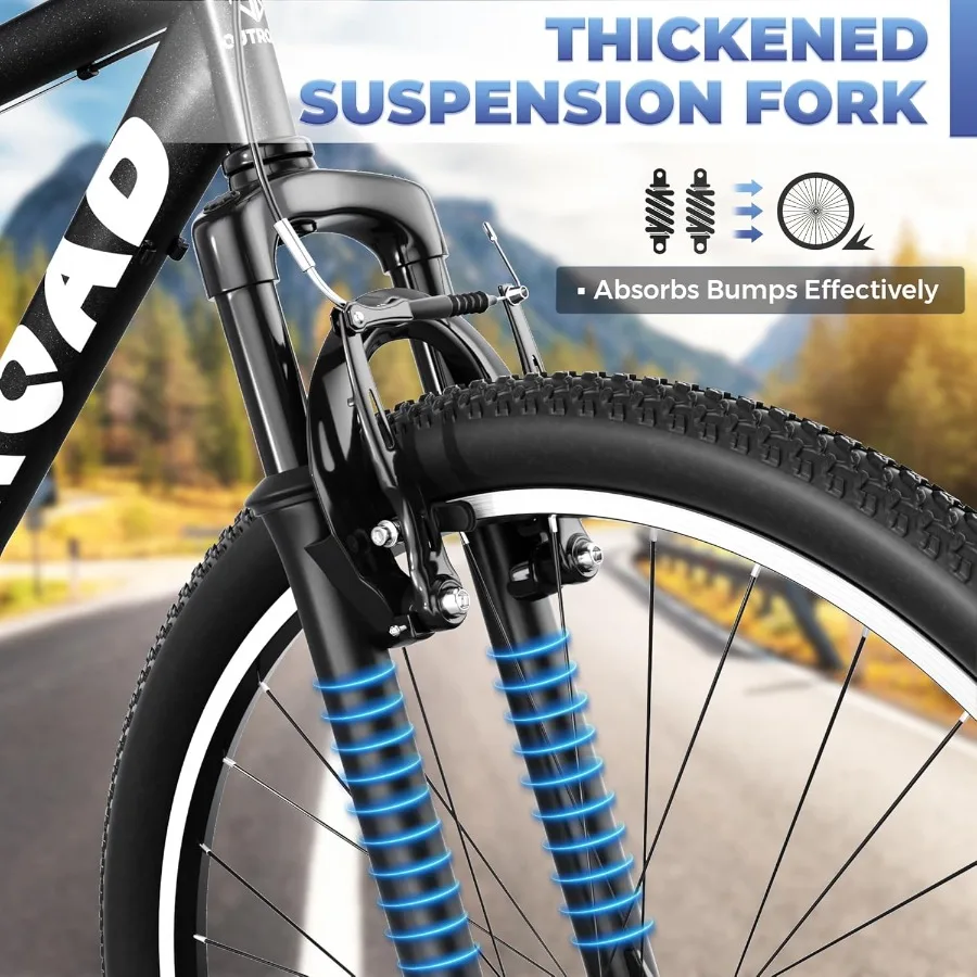 This 26 Inch Mountain Bike combines durability, performance, and lightweight design for both men and women. Constructed with a strong metal frame, it ensures long-lasting reliability. The dual disc V-brake system provides precise and responsive stopping power. Ideal for mountain trails, commuting, or leisure rides, it handles various terrains with ease. Lightweight design allows easy maneuverability without compromising stability. Ergonomic handlebars and a comfortable saddle enhance riding comfort. Suitable for adult riders, this bike offers a smooth and efficient cycling experience. Non-slip tires provide traction on rough or slippery surfaces. The sturdy construction supports long rides and outdoor adventures. Enjoy a versatile, safe, and comfortable ride with this high-performance mountain bike.