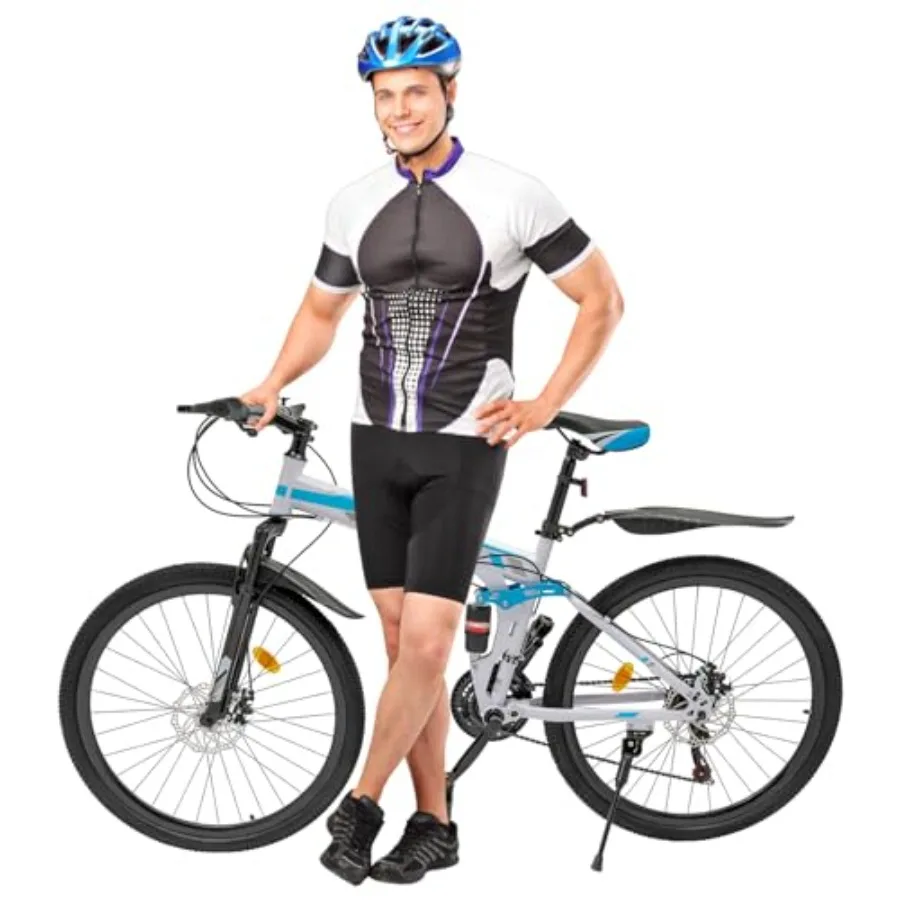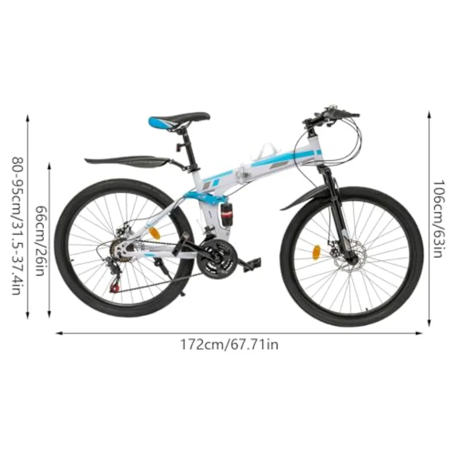 This 26 Inch Folding Mountain Bike is designed for adults seeking performance, durability, and convenience. Built with a high-carbon steel frame, it offers strength and long-lasting use. The 21-speed gear system allows smooth shifting across various terrains, from city streets to rugged trails. Dual disc brakes provide reliable stopping power for safety and control. Non-slip tires ensure traction on off-road and slippery surfaces. The foldable design makes it easy to transport and store, perfect for commuting or adventure trips. Ergonomic handlebars and a comfortable saddle enhance riding comfort for long distances. Lightweight yet robust, it balances portability with durability. Ideal for mountain biking, trekking, and outdoor sports enthusiasts. Experience versatility, stability, and performance with this high-quality folding mountain bike.