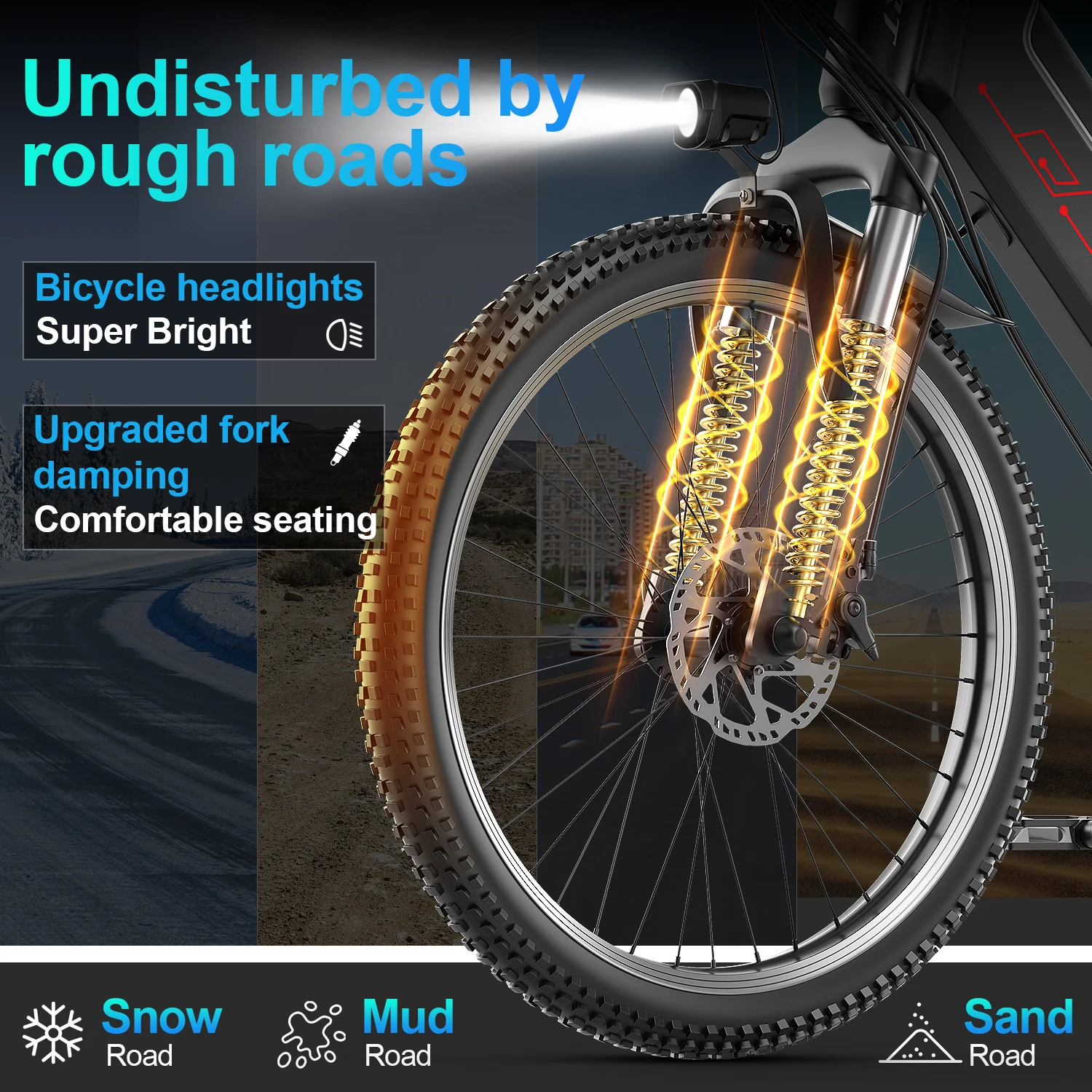 The ASKGO 1500W Electric Bike delivers high power and performance for adventurous riders. Equipped with a strong 1500W motor, it reaches speeds up to 25mph effortlessly. The built-in 499Wh battery provides a range of up to 55 miles on a single charge. Designed with durable 26-inch tires, it handles both mountain trails and city streets with ease. The ergonomic frame ensures comfort during long rides. Front suspension absorbs shocks for smoother, more stable cycling. Multiple riding modes allow flexibility for commuting, exercising, or exploring. The bike’s LED display shows speed, distance, and battery level clearly. Quick charging and easy battery removal make it practical for everyday use. Stylish, powerful, and efficient—the ASKGO Electric Bike redefines outdoor riding freedom.