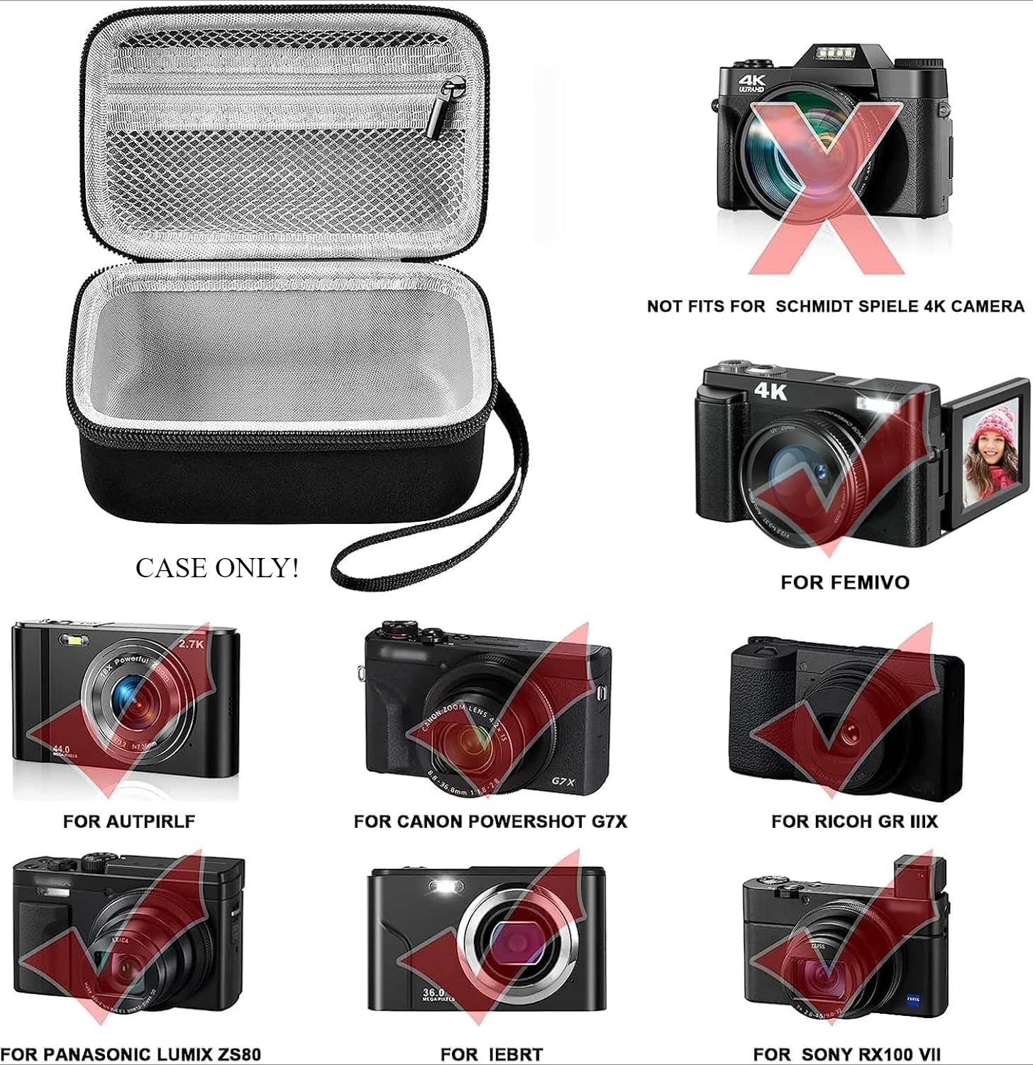 This digital camera protective case is designed to keep your 4K vlogging camera safe and secure. It is compatible with models from TEBNGIHNM, Duluvulu, Oiadek, Zheozeig, Zostuic, and Toiauaha. The durable shell provides excellent protection against bumps, scratches, and dust. Its lightweight build makes it easy to carry wherever you go. The compact size ensures a snug fit without adding extra bulk. Inside, the soft lining keeps your camera safe from scratches. A sturdy zipper closure provides secure storage and easy access. The case is perfect for travel, daily use, or outdoor filming. Its minimalist design makes it both functional and stylish. Keep your vlogging camera protected and ready for action with this reliable protective case.