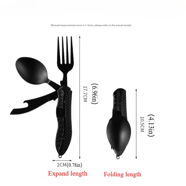 This outdoor camping cutlery set is a versatile solution for all your dining needs. Made from durable stainless steel, it is corrosion-resistant and built to last. The foldable design makes it compact and easy to carry in backpacks or travel kits. The set includes a spoon, fork, knife, and bottle opener, covering all essential utensils. Ideal for camping, picnics, hiking, and travel, it provides convenience wherever you go. Lightweight yet sturdy, it is perfect for both adults and children. Easy to clean and reusable, it is an eco-friendly alternative to disposable cutlery. Its multitool design ensures you have the functionality of several items in one compact set. Durable construction withstands frequent outdoor use. This portable cutlery combo set combines practicality, convenience, and durability for all your outdoor meals.