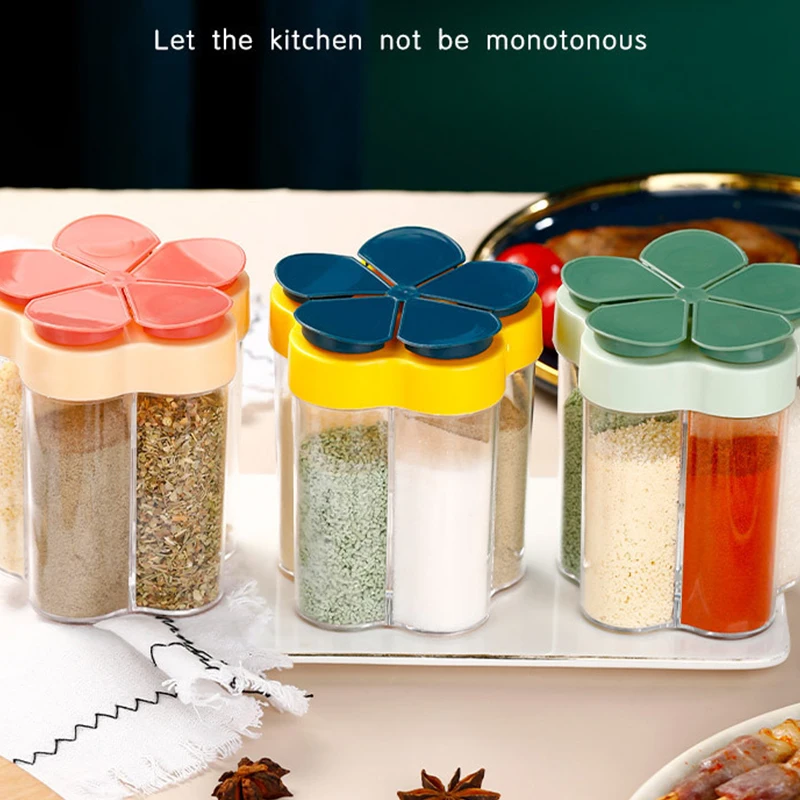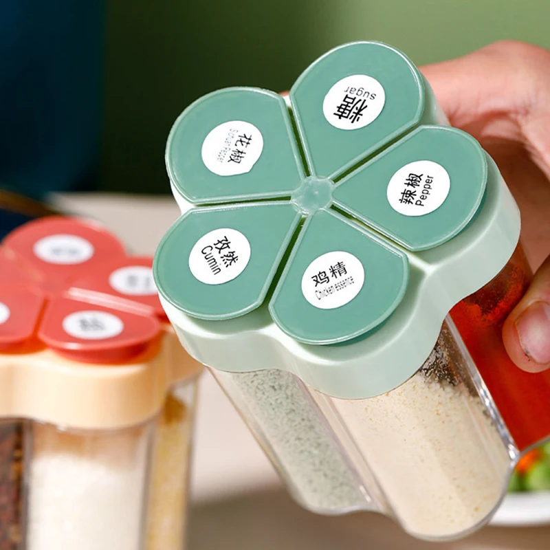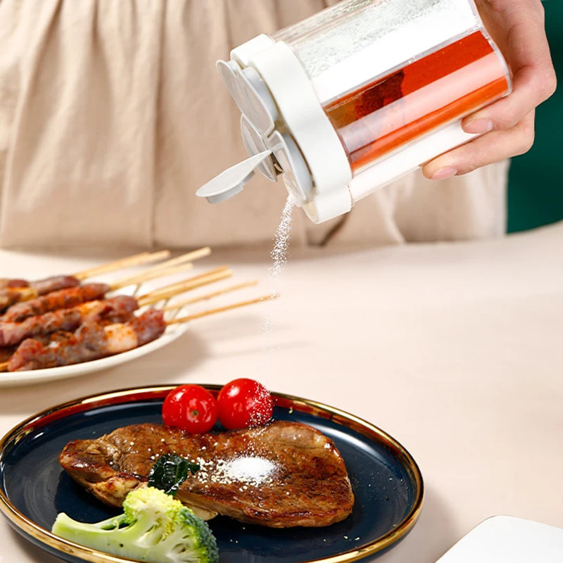 Compact 5-in-1 spice bottles with transparent design and individual lids. Perfect for storing salt, pepper, and seasonings for outdoor cooking, camping, picnics, and barbecues.