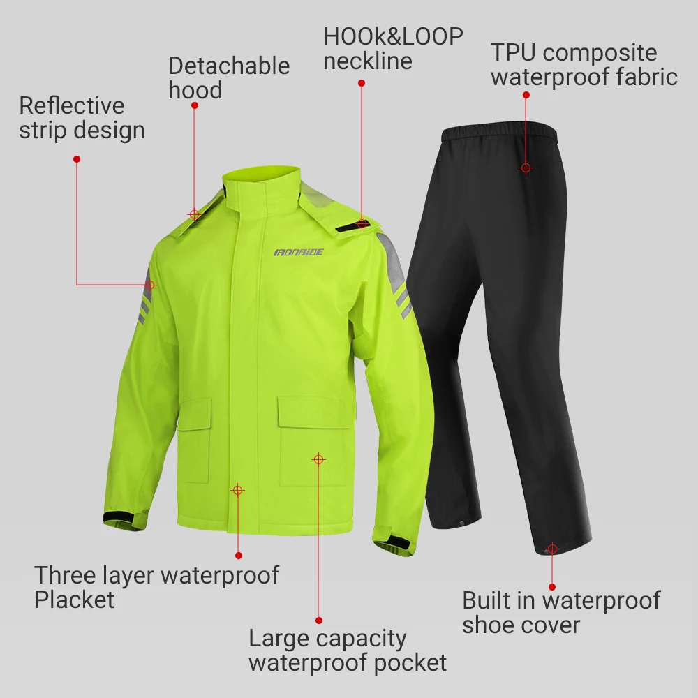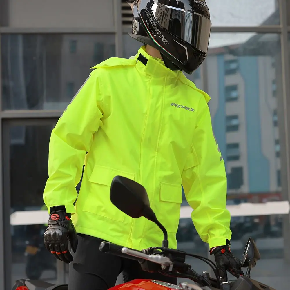 This waterproof motorcycle rain jacket is designed to keep riders dry and comfortable in all weather conditions. Made with durable, water-resistant fabric, it provides full coverage against rain and wind. The hooded design, featuring long sleeves, ensures extra protection during rides. Lightweight and easy to pack, it can be stored conveniently when not in use. Suitable for both men and women, it offers a versatile fit for all riders. The breathable material prevents overheating while maintaining dryness. Perfect for motorcycle riding, commuting, and other outdoor activities. Its secure closures and adjustable fit keep the jacket in place even at high speeds. Stylish and functional, it combines practicality with a sleek look. Stay protected on the road with this reliable motorcycle raincoat.